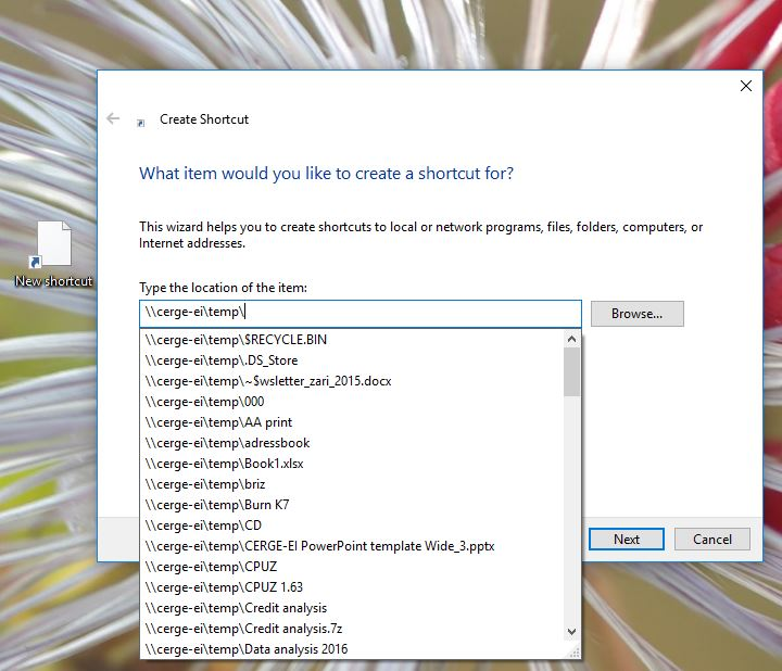 Show pagesourceOld revisionsBacklinksExport to PDFBack to top Share via Share via... Twitter LinkedIn Facebook Pinterest Telegram WhatsApp Yammer RedditRecent ChangesSend via e-MailPrintPermalink × How to make a Shortcut To file or folder Find location where to put the Shortcut, e.g. Desktop Left Mouse: New / Shortcut Find or fill the destination path to the file or folder Put the name and finish /var/www/html/dokuwiki/data/pages/public/make_shortcut.txt Last modified: 2018-10-10 08:37by jvais